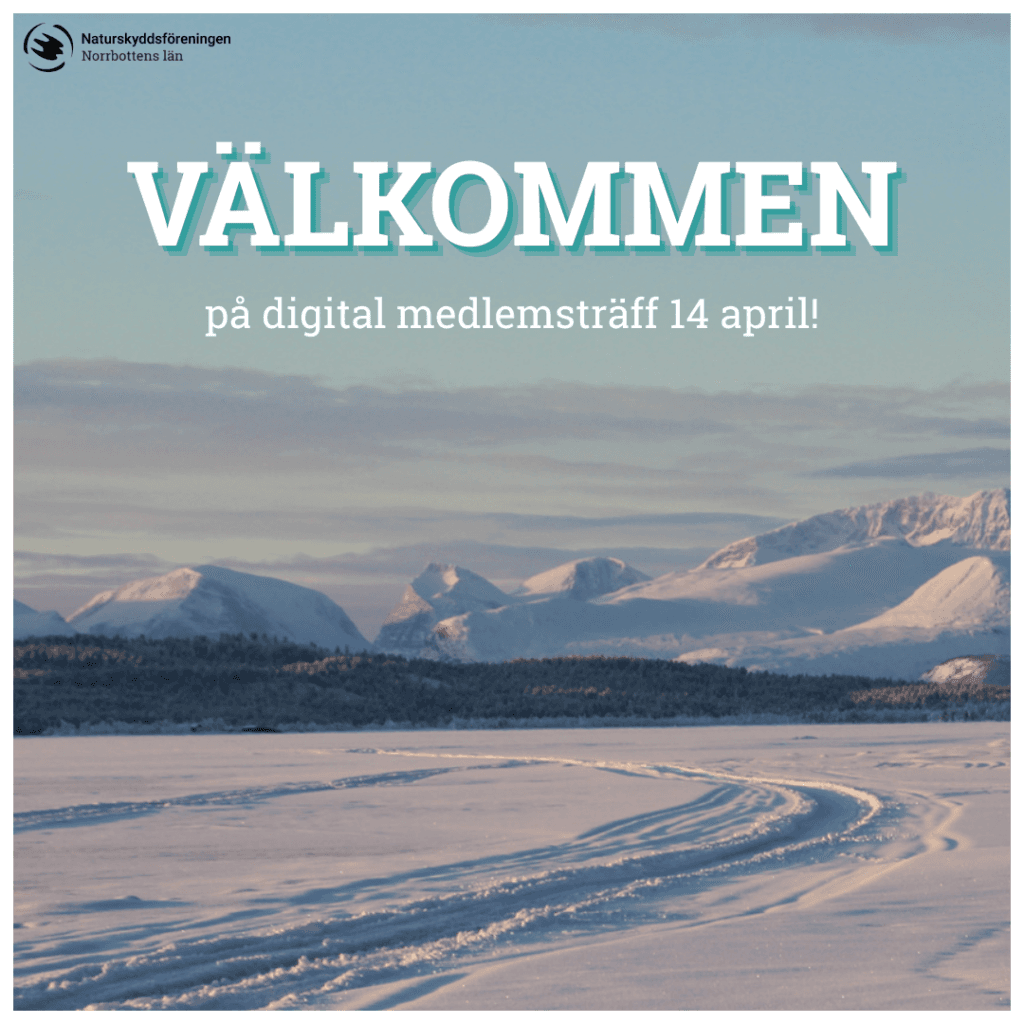 Tisdag 14 april kl 18.00 ses vi digitalt. Denna gång är fokus på Naturskyddsföreningens rikskonferens som hålls 8-10 maj i Umeå. Tid finns för diskussion och frågor.