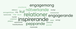 Efter lunchen var det dags att riktigt kickstarta programmet på bästa sätt, med inspirationsföreläsning av Kata Nylén från Klimatpsykologerna. Kata nämnde bland annat alla delar som behövs för att ens engagemang ska vara hållbart, och hur viktigt just socialt stöd och gemenskap är.