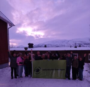 Efter incheckning på rummen på fina Abisko Naturvetenskapliga station (ANS) samlades alla för en gemensam lunch. Julia Humbla, verksamhetsutvecklare på kansliet, hälsade alla välkomna och riktade särskilda tack till de som varit en viktig del i att skapa denna helg: de ideellt engagerade, länsförbundets styrelse, ANS, Naturum, Fältbiologerna, Researcher’s desk, Klimatpsykologerna och inte minst Naturskyddsföreningen riksförening! Tillsammans för klimatet!