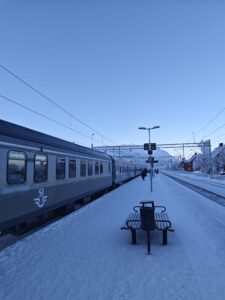 Vi gjorde det mesta av det klara och vackra vädret och tog gruppbilder vid tåget för att använda i kampanjer för att rädda nattågen. Trafikverket annonserade i december att nattågstrafiken Stockholm-Narvik ska halveras från och med april, ett beslut som vi och väldigt många andra anser är helt fel och måste dras tillbaka!