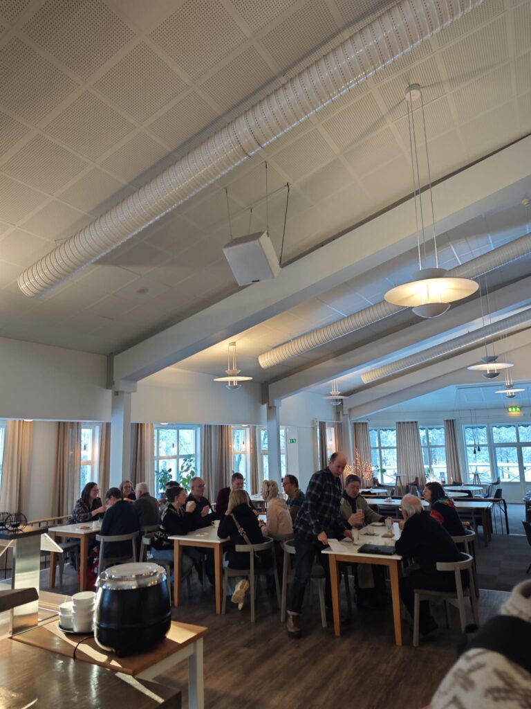 På fredagen började deltagare att anlända till fina Framnäs folkhögskola i Öjebyn. Temperaturen smög sig ned mot -30, så det passade bra med värmande god mat och socialisering vid middagsbordet.