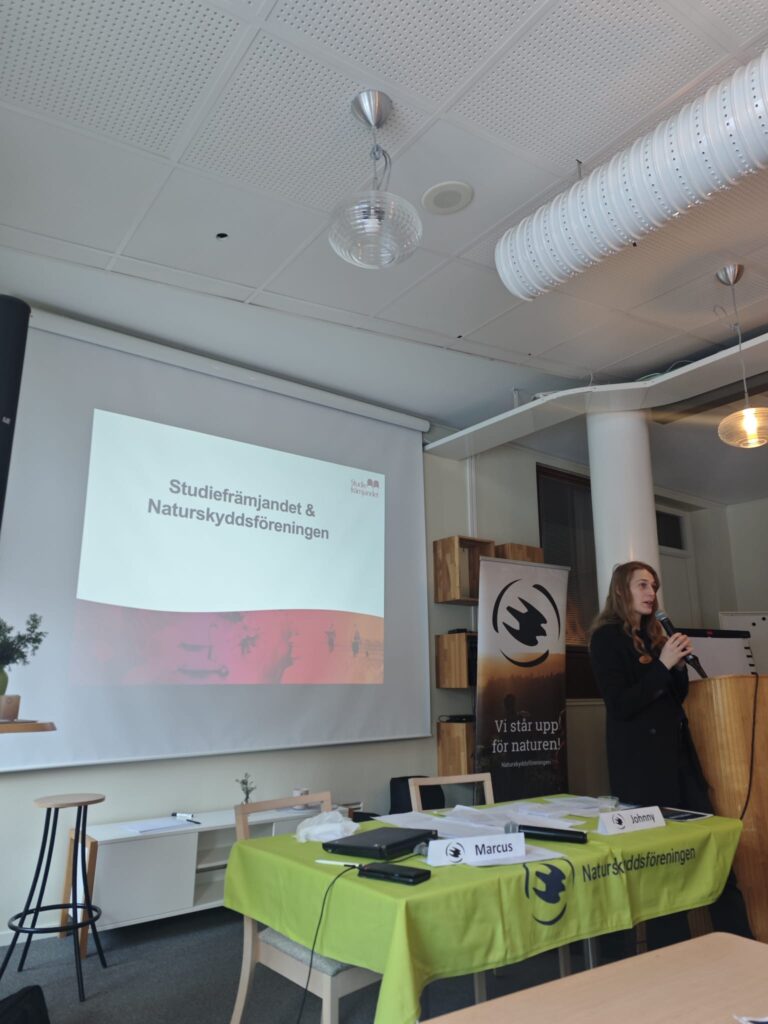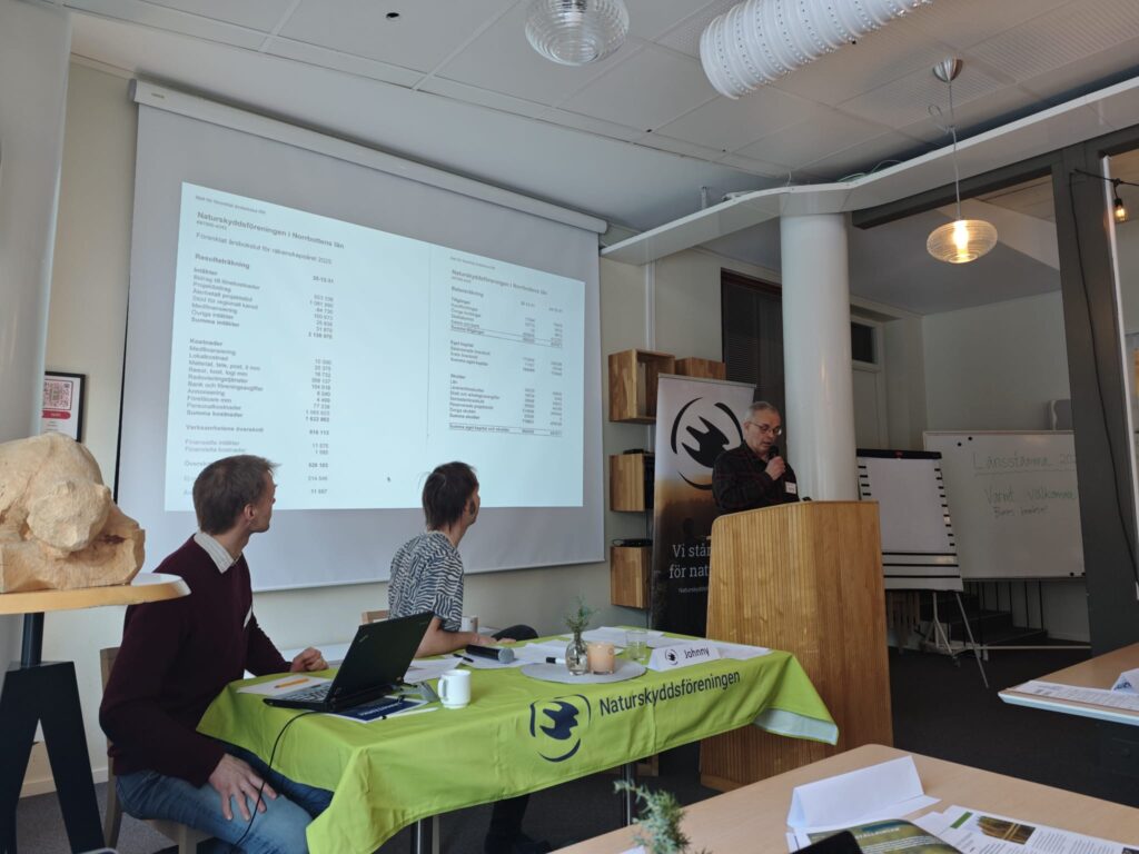 Efter lunchen delades Naturskyddspriset ut till gruppen JA till en framtid utan gruva i Nunasvaara. ”Naturskyddspriset 2025 delas ut till gruppen som jobbar för en framtid i Nunasvaara utan gruvor. Deras arbete är raka motsatsen till det tornedalska uttrycket “ei se kannatte” – det löns inte. Nej, att ge sig platt är sannerligen inget de tänkt göra.”
