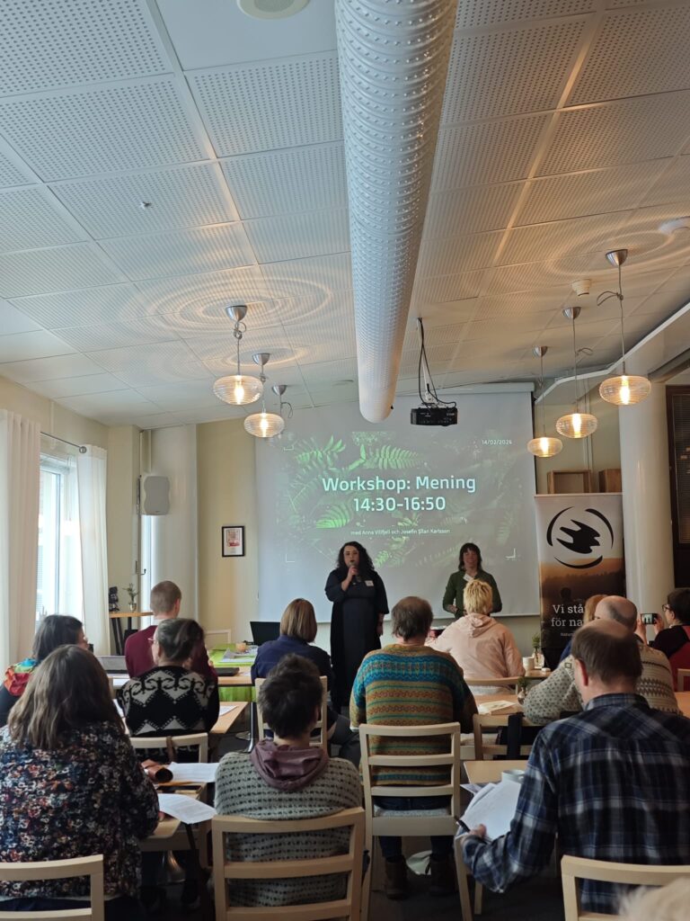 Efter en kort paus samlades sedan deltagarna för att delta i dagens workshop: ”Meningsfullt del I: Workshop om våra ”varför” med konsten och kulturen som språngbräda och verktyg, med Anna Villfjell och Josefin Şîlan Karlsson”.