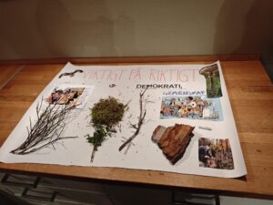 Workshopen innehöll flera övningar, där deltagarna bl.a. fick diskutera varför de är medlemmar och engagerade i Naturskyddsföreningen. I slutet av workshopen skapade alla en gemensam affisch i grupper, alla verk visades sedan upp i en gemensam vernissage.